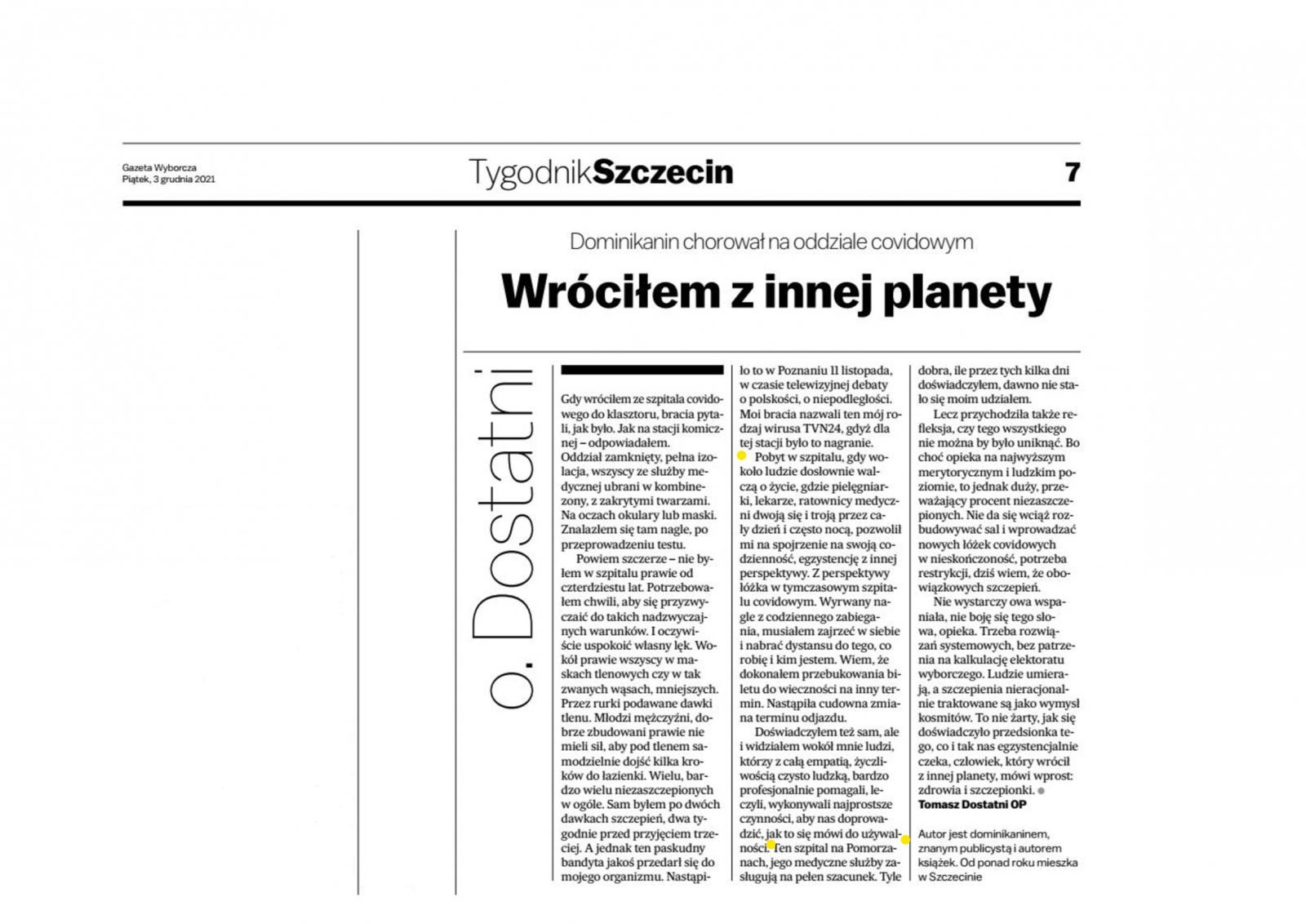 Dominikanin chorował na oddziale covidowym: "Wróciłem z innej planety"