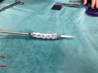 Zwężony wstępnie stent-graft, gotowy do przymiarki w wydruku 3D przed spakowaniem do systemu wprowadzającego, fot. USK-2
