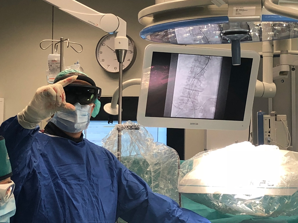 Chirurdzy naczyniowi z Uniwersyteckiego Szpitala Klinicznego Nr 2 PUM w Szczecinie sięgnęli po nowatorską metodę operacji. Polegała ono na użyciu specjalnych gogli rozszerzonej rzeczywistości, które są zdolne do wyświetlania rekonstrukcji naczyń pacjenta w trójwymiarze – w powietrzu, w formie wyświetlanych hologramów. Rozszerzona rzeczywistość to system łączący świat rzeczywisty z generowanym komputerowo. Chirurg widzi obraz sali operacyjnej w czasie rzeczywistym, a oprócz tego także elementy naniesione komputerowo, w tym przypadku model naczyń. Model taki otrzymuje się z tomografii komputerowej pacjenta, który stanowi wierne odzwierciedlenie anatomii pacjenta. Technika ta daje lepszy wgląd w to, jak wygląda budowa anatomiczna naczyń. Obraz 3D jest potrzebny tam, gdzie mamy do czynienia ze strukturami przestrzennymi, jak np. tętniaki aorty. Tymczasem format 2D nie daje możliwości wglądu w przestrzeń – mówi prof. dr hab. n. med. Piotr Gutowski, lekarz kierujący Kliniką Chirurgii Naczyniowej, Ogólnej i Angiologii USK-2. Obraz wykreowany dzięki tej nowoczesnej technologii tworzony jest jako hologram i może być umiejscowiony w jakimkolwiek miejscu na sali operacyjnej. Urządzenie zapamiętuje jego położenie w przestrzeni i wyświetla hologram zawsze, gdy operator patrzy w tym kierunku. W związku z tym obraz ten nie interferuje z polem operacyjnym i nie powoduje ograniczenia widoku ważnego dla operacji.
