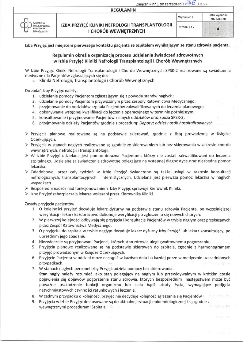 Regulamin Izby Przyjęć
