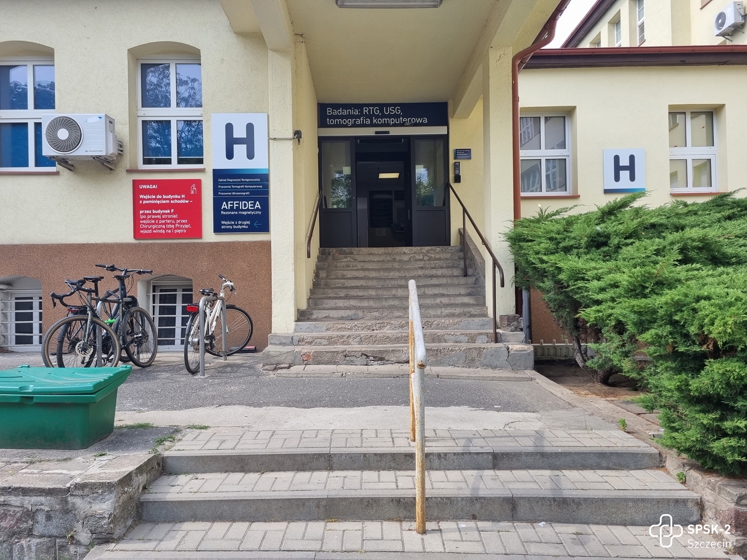Od 19 września z powodu remontu wejścia do bud. H (siedziba Zakładu Diagnostyki Rentgenowskiej – Pracowni Tomografii Komputerowej i Pracowni USG), do budynku wejść będzie można: