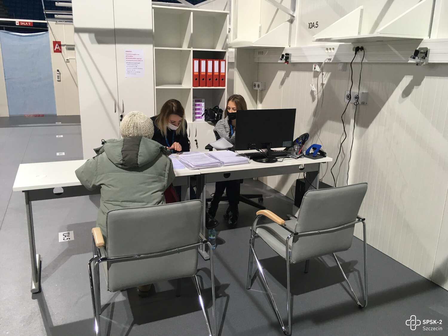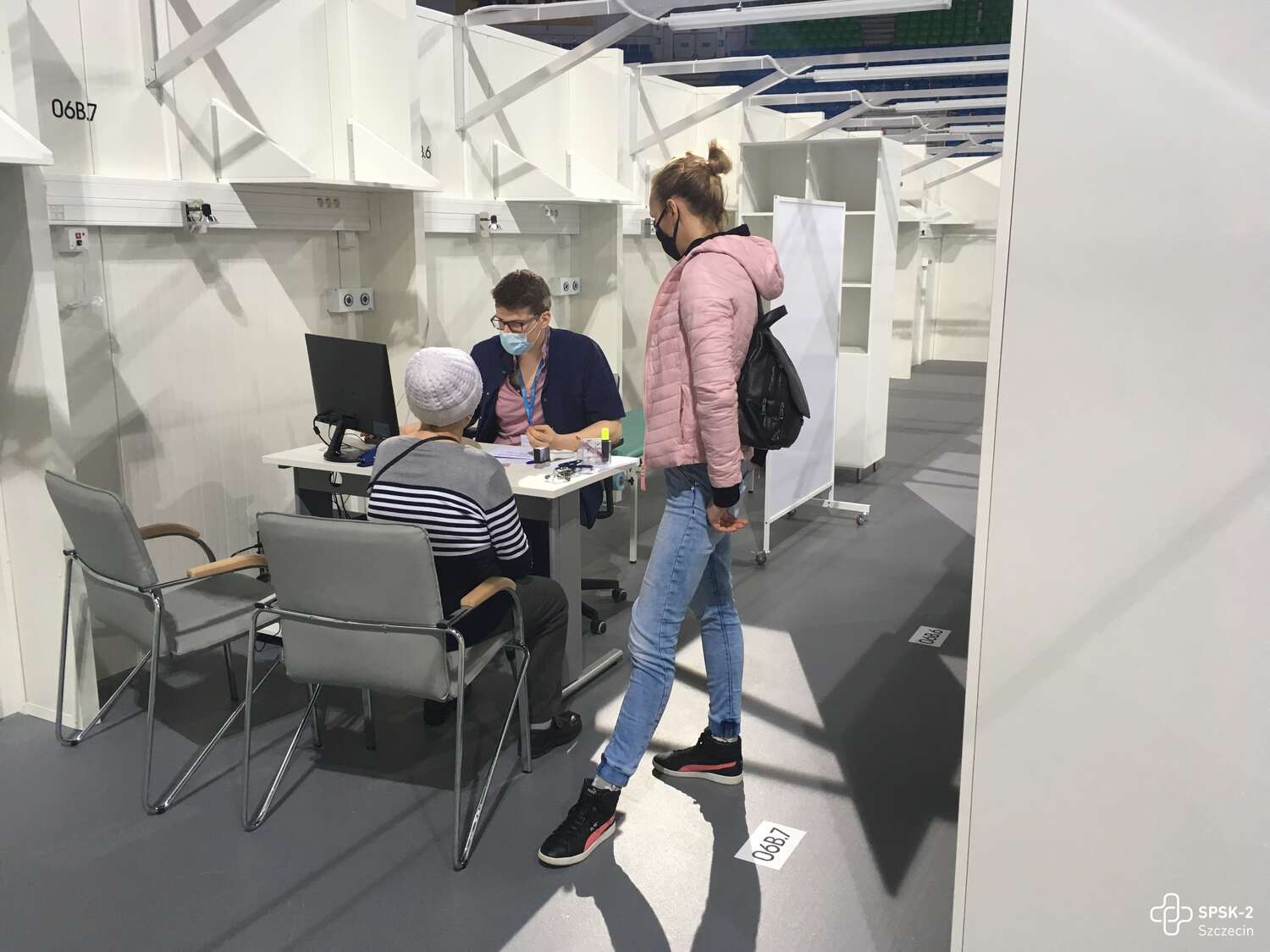 Na terenie punktu szczepień obecni są opiekunowie, służący pomocą pacjentom - wśród wolontariuszy są m.in. studenci Pomorskiego Uniwersytetu Medycznego w Szczecinie, żołnierze i pracownicy Stowarzyszenia Centrum Seniora.