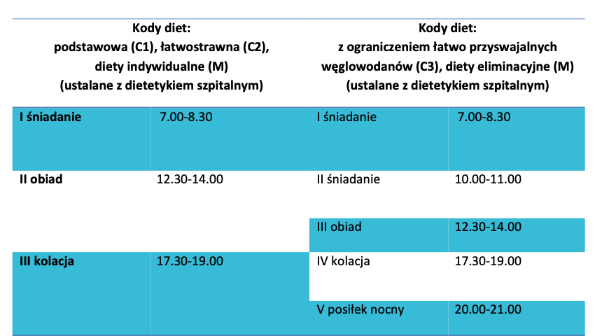 Pacjenci USK-2 otrzymują posiłki zgodnie z poniższymi schematami: