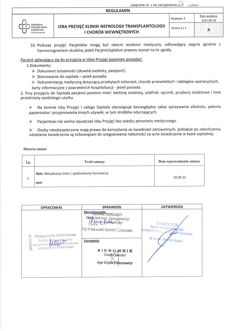 Regulamin Izby Przyjęć