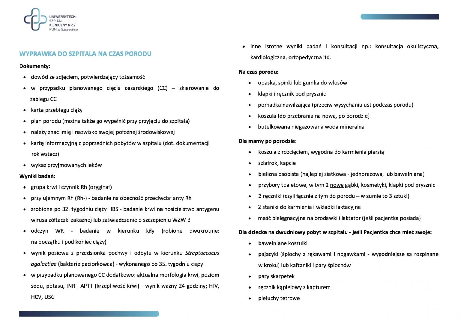 Wyprawka dla rodzących (dotyczy zarówno porodów naturalnych, jak i cięć cesarskich) - dokumenty