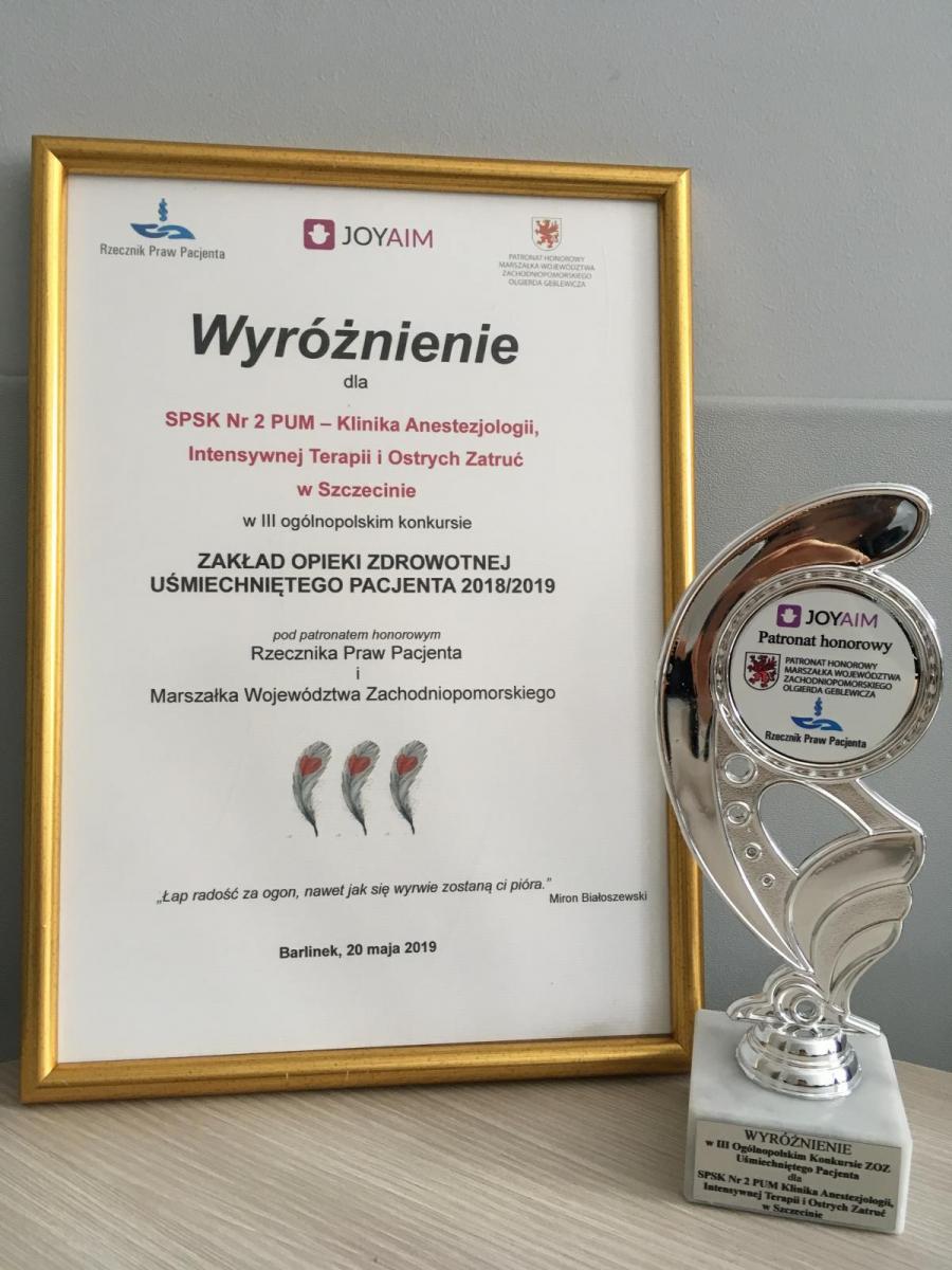 Dyplom i statuetka III Konkursu ZOZ Uśmiechniętego Pacjenta