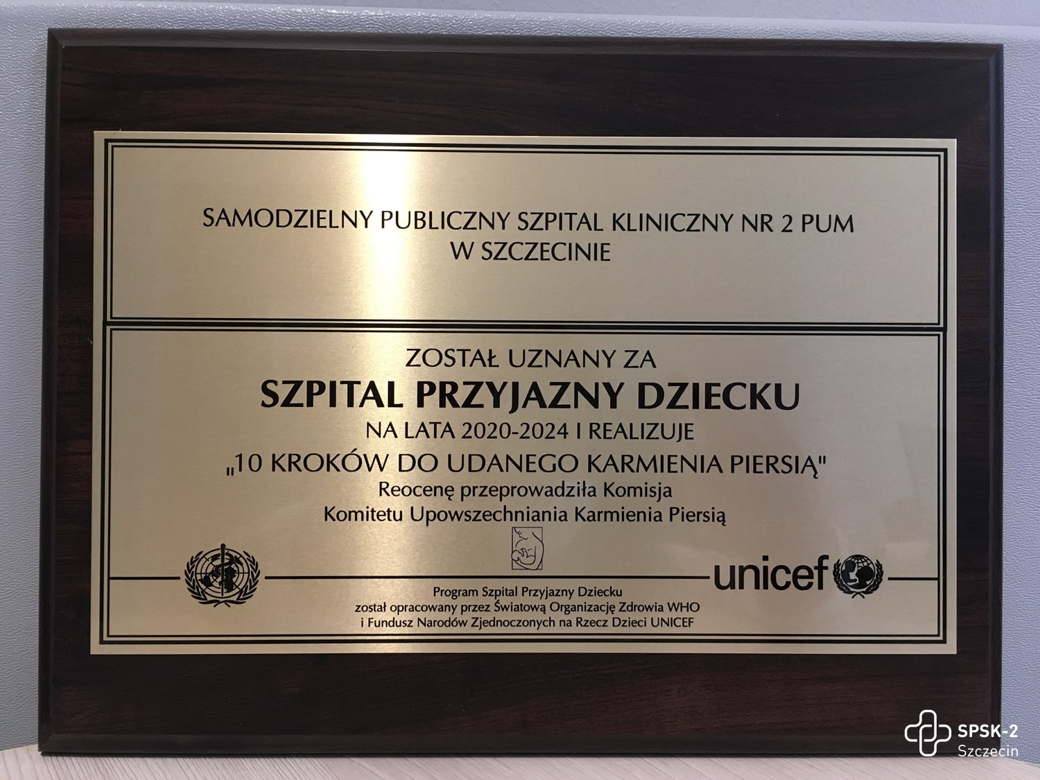 W ubiegłym roku nasz szpital otrzymał pozytywną ocenę w ramach certyfikacji do otrzymania tytułu Szpitala Przyjaznego Dziecku. Z powodu pandemii uroczyste „wręczenie” tabliczki z tytułem odbyło się za pośrednictwem poczty. Certyfikat został przyznany nam już po raz trzeci z rzędu i obowiązuje  do 2024 roku.