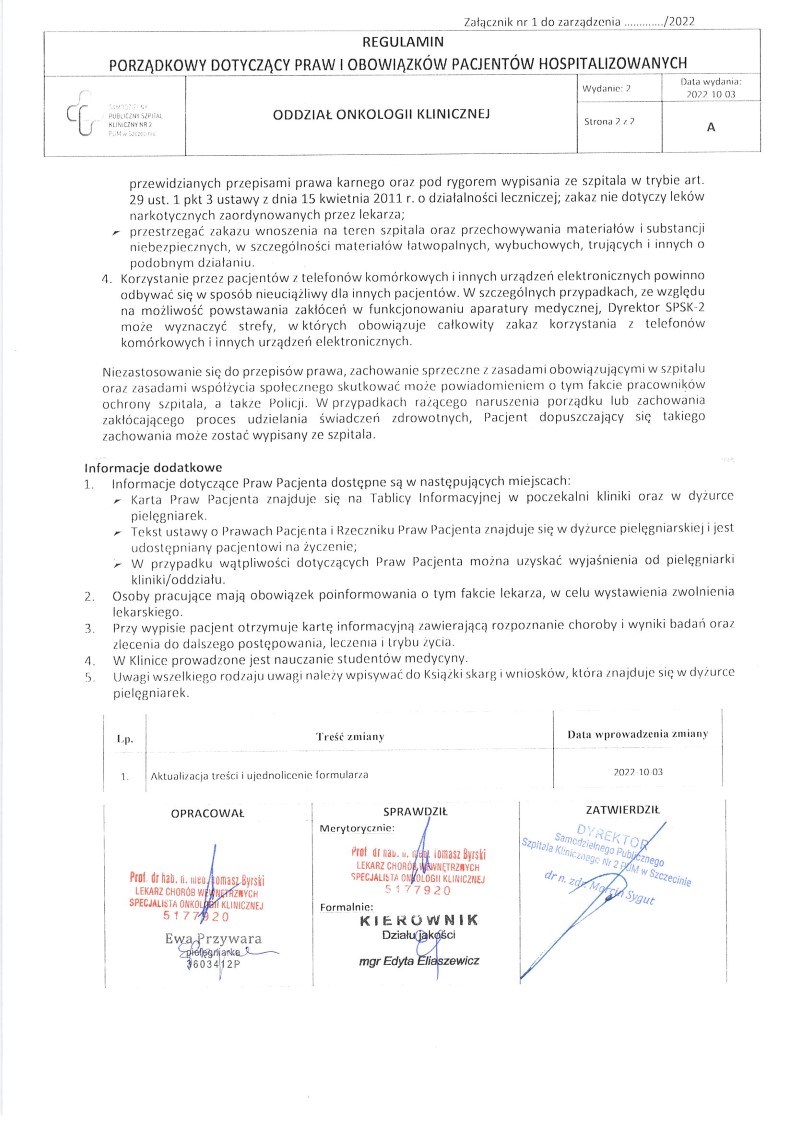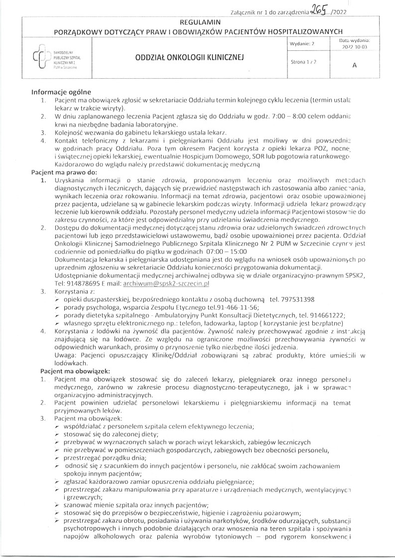 Regulamin Oddziału